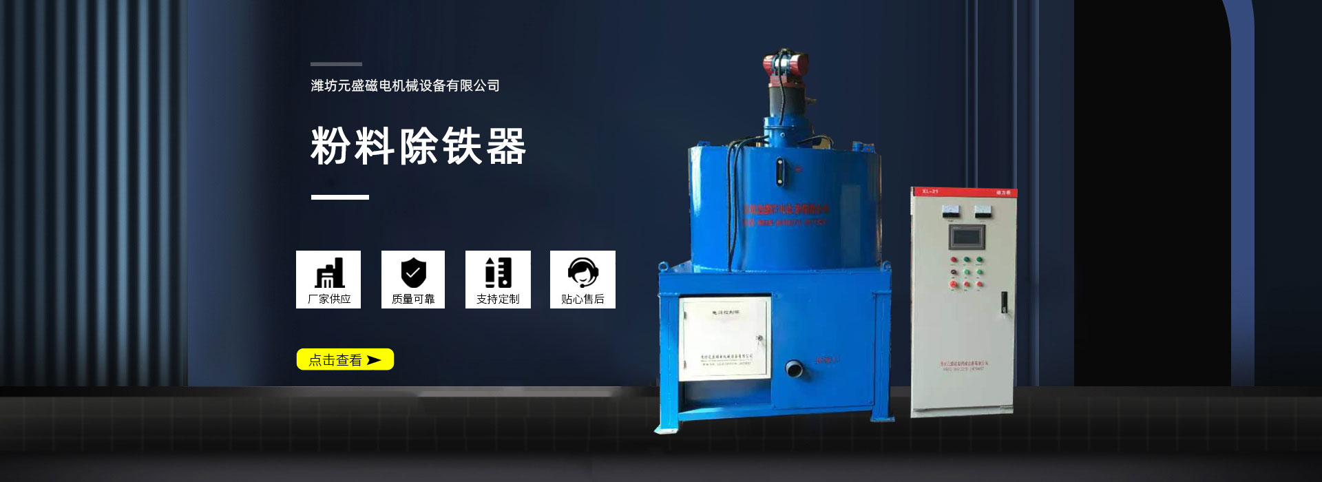 濰坊元盛磁電機(jī)械設(shè)備有限公司致力于金屬探測、磁選、除鐵、微機(jī)計(jì)量、微機(jī)控制技術(shù)的研究和開發(fā),并已形成系列產(chǎn)品。主要產(chǎn)品有:各種型號(hào)的金屬探測儀, 電振機(jī),電磁除鐵器、永磁除鐵器,磁選機(jī),輸送機(jī),微機(jī)計(jì)量設(shè)備,水泥微機(jī)配料、預(yù)加水成球系統(tǒng)等。產(chǎn)品廣泛用于建材、化工、冶金、礦山、玻璃、陶瓷、糧食、食品等行業(yè),…… “質(zhì)量良好、信譽(yù)良好、用戶良好”是本廠的經(jīng)營宗旨,我廠竭誠歡迎各地用戶蒞臨考察,洽談業(yè)務(wù)。